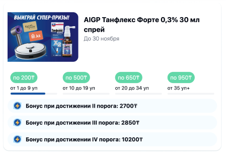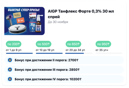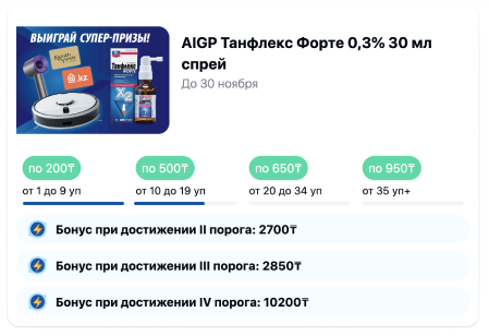 Екінші ұтыс ойынына Танфлекс Форте 0,3% 30 мл спрей акциясы бойынша 2024 жылдың 30 қарашаға дейін №3 және №4 шекті деңгейге жеткен қолданба пайдаланушылары қатысады. 🚫Бірінші ұтыс ойынында жүлделі орындарға ие болған қатысушылар екінші ұтыс ойынына қатыспайды. Екінші ұтыс ойынының жеңімпаздары 2024 жылдың 4 желтоқсан күні сағат 15.00-де, PharmaPay-дің Youtube парақшасында тікелей эфирде, You to Gift қызметінің онлайн рандомайзерінің көмегімен жарияланады.